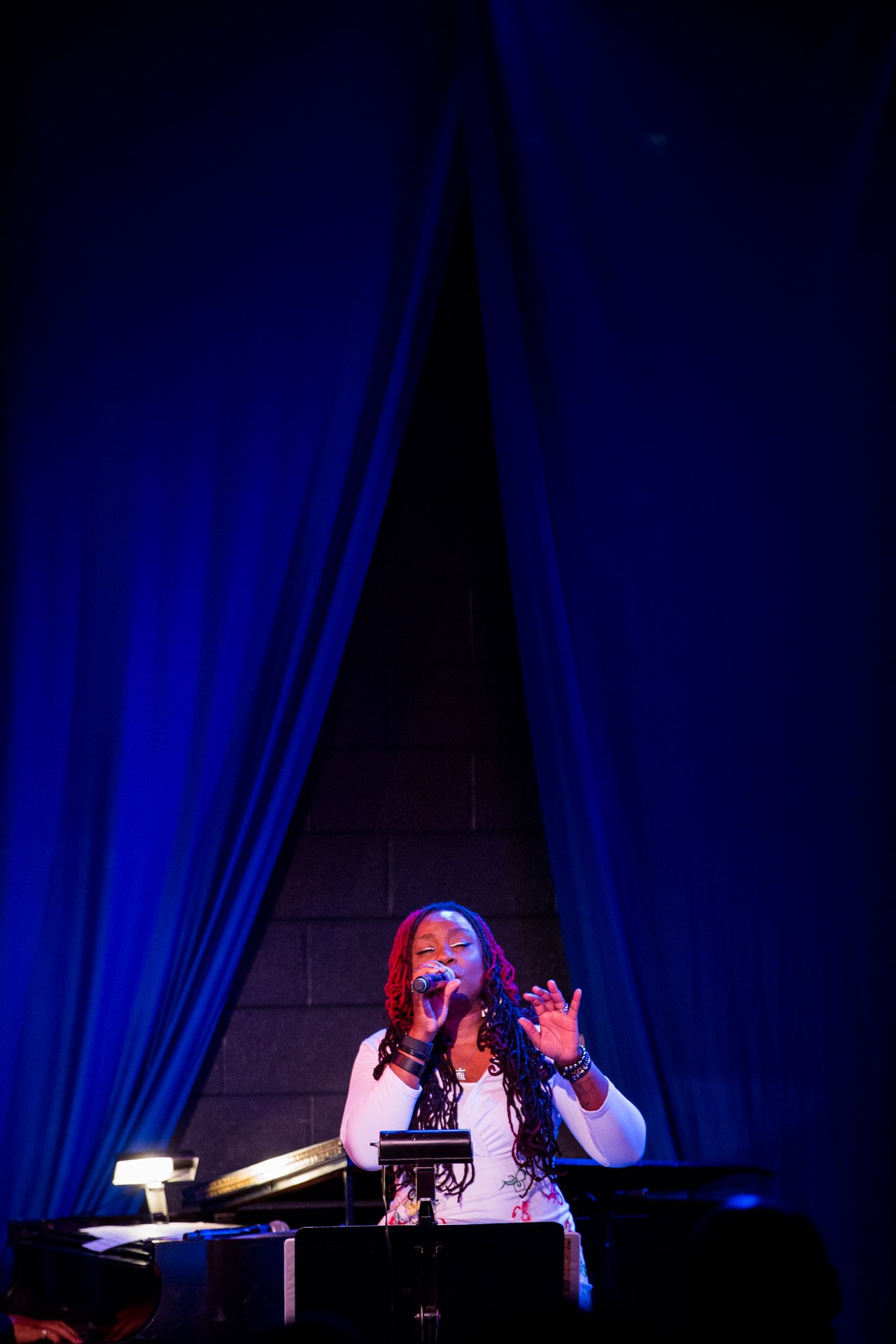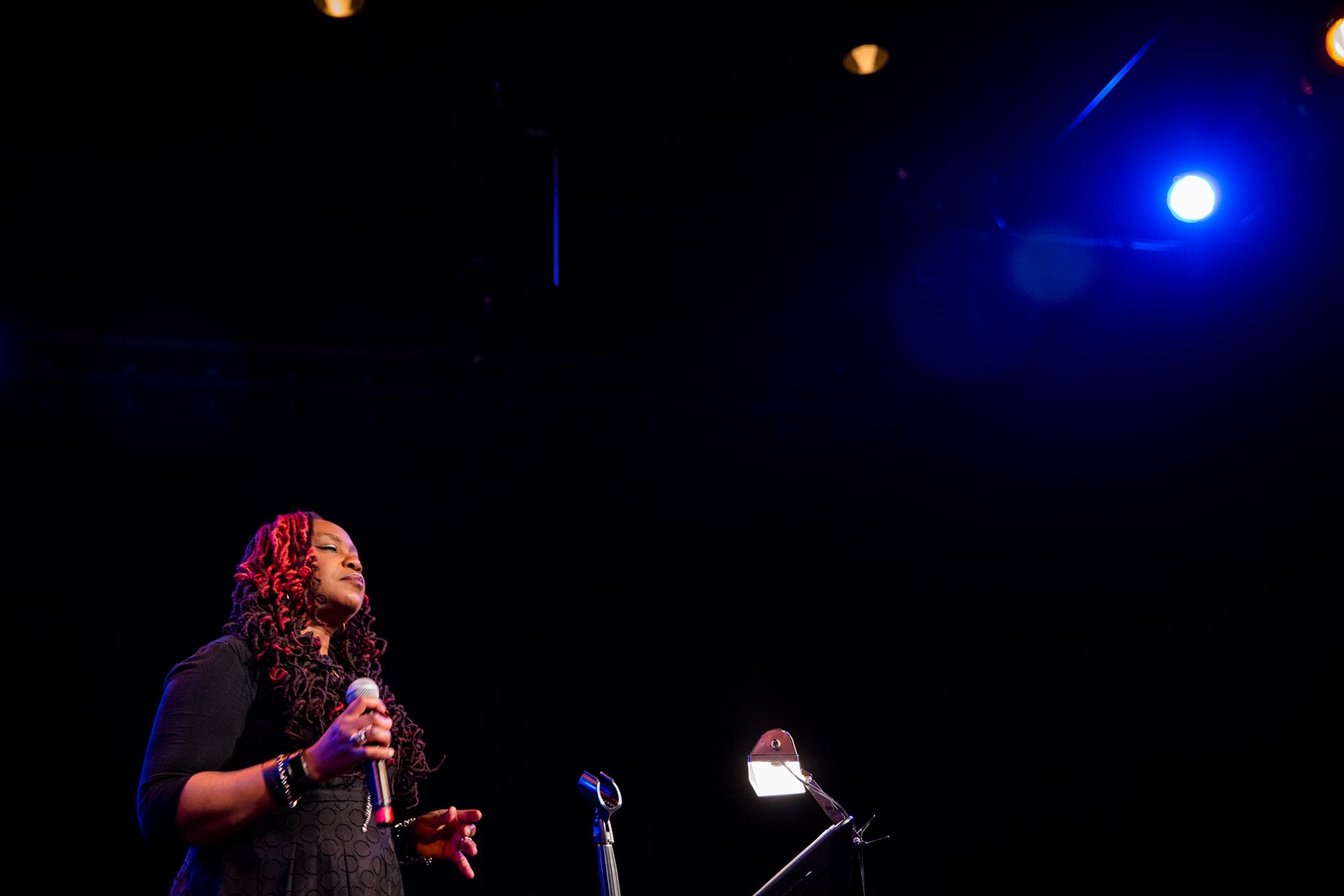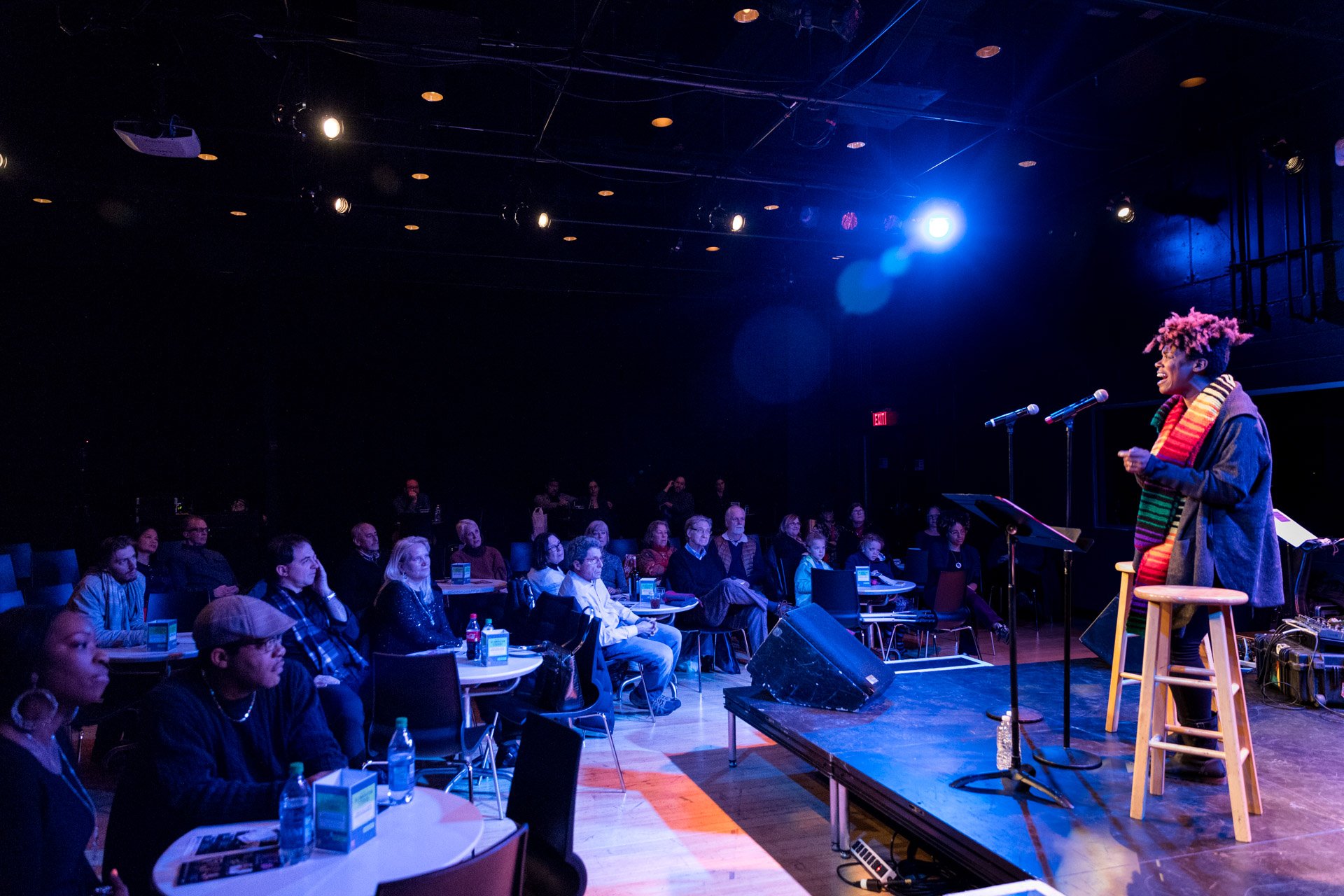Ursula Rucker performing as part of the Jazz Residency at the Kimmel Center. Photo by Gustavo Garcia.